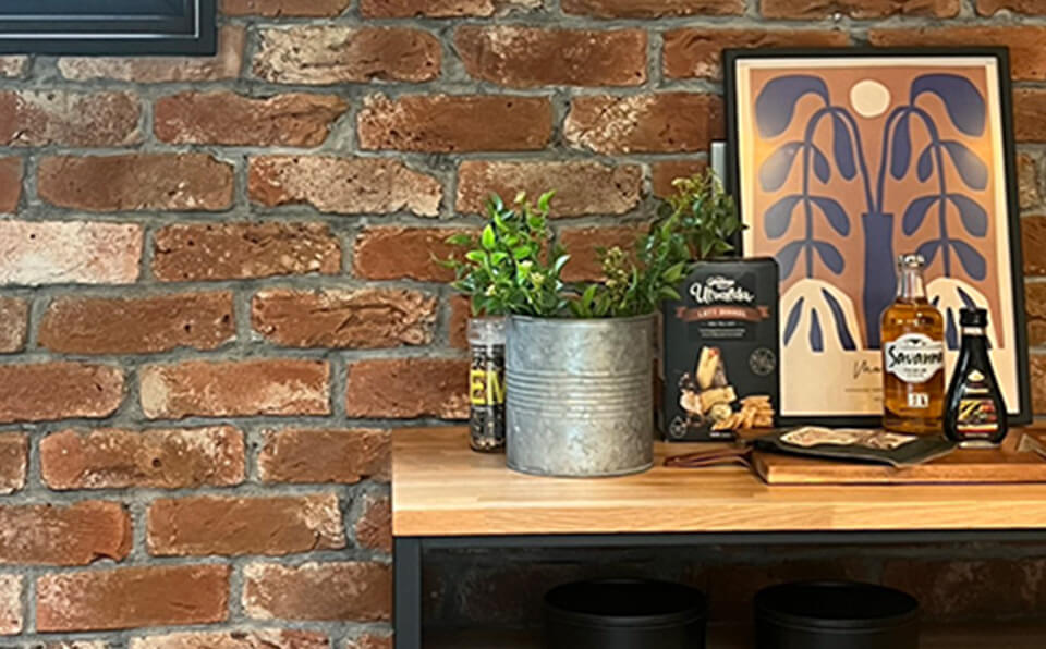 本物のレンガの素材感にこだわったことで、どこから見てもパッと目を引く印象的なアクセントに。