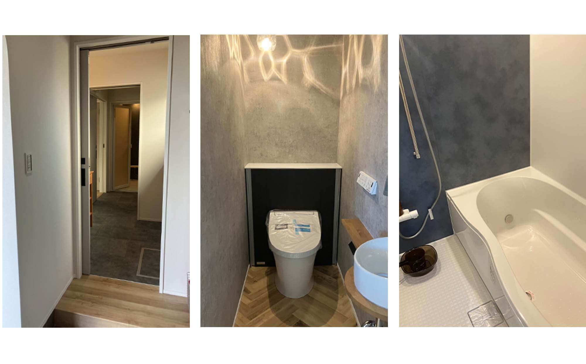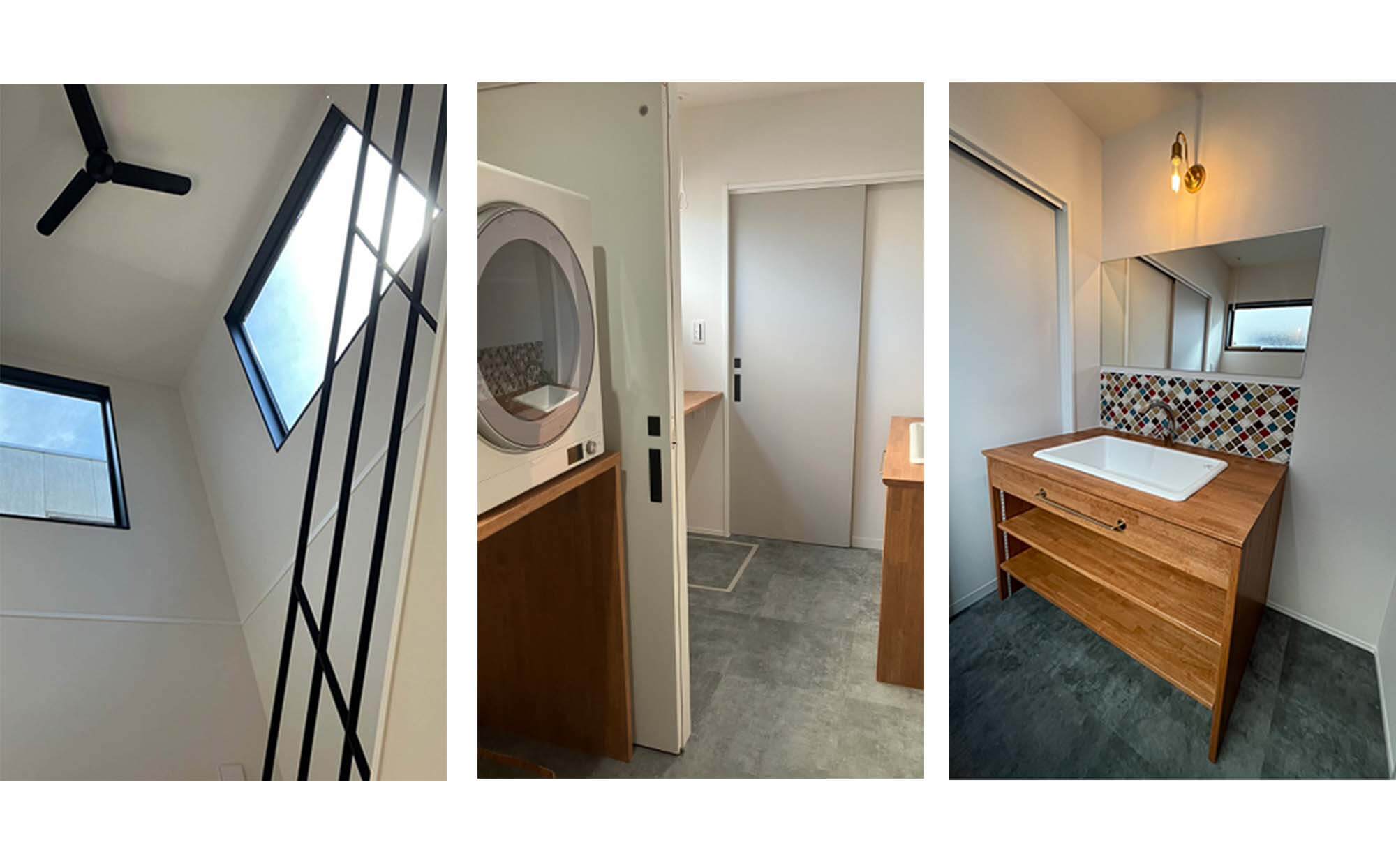 ■敷地面積 181.81㎡(55坪) ■床面積(1F) 61.48㎡(18.59坪) (2F) 52.99㎡(16.02坪) ■延床面積 114.44㎡(34.62坪) ■間取り 4LDK ■構 造 プレウォール工法 ■竣 工 25年10月